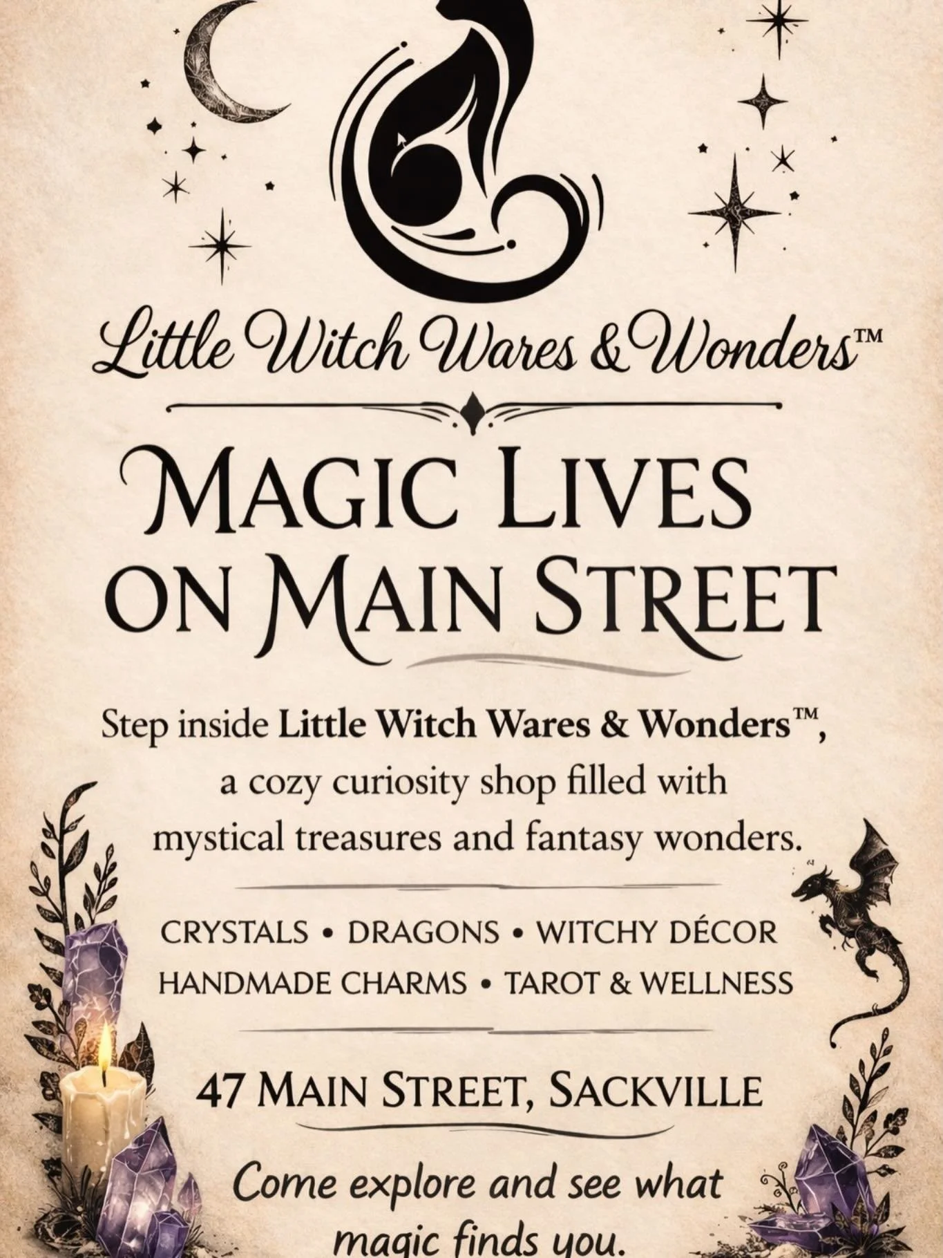 Little Witch Wares & Wonders is a small, magical boutique offering handmade goods, herbal blends, teas, crystals, jewellery, and enchanted creations for everyday life.